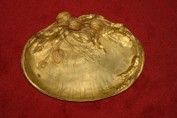 Important vide-poche en bronze ciselé et doré à décor de chardons