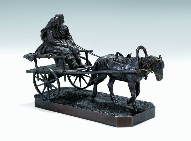 | A RUSSIAN COUPLE ON A HORSE-DRAWN CART | |