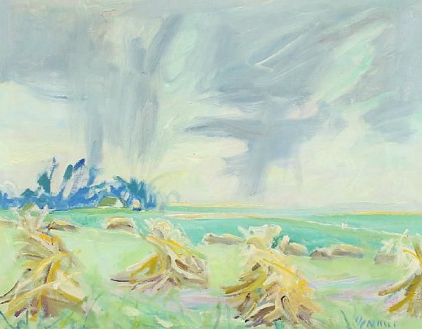 Landscape with haystacks
