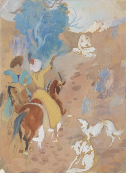 | Watercolor and gouache, black crayon | |
