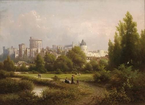 | AN ATTRACTIVE VIEW OF WINDSOR CASTLE WITH CHILDREN PLAYING IN THE FOREGROUND | |