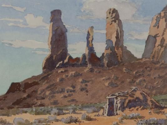Three Sisters, Monument Valley, Navajo Hogan