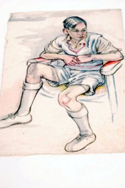 Full length portrait study of a seated boy "Gordon Randall 1937"