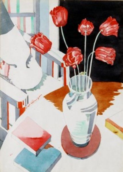 Still life with a vase of tulips