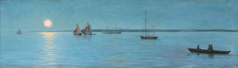 | Sailing ships and boats in the moon light on a quiet evening | |