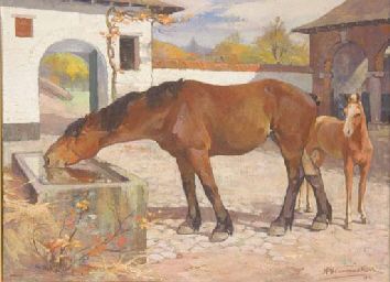 Les chevaux à l'écurie; Une tête de cheval arabe