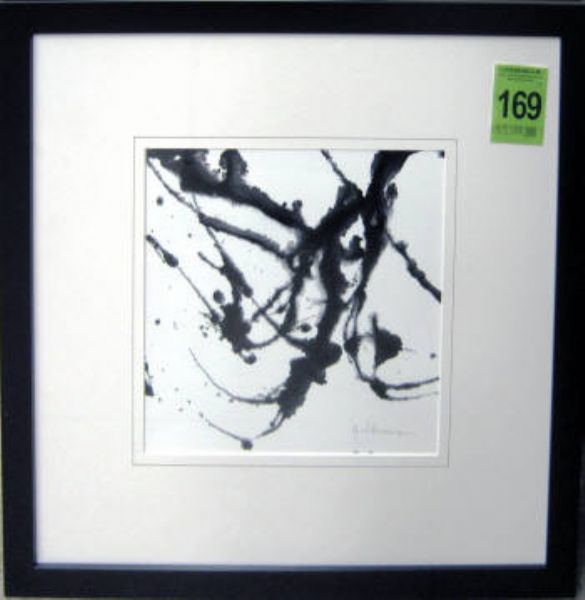 Oil paintings, black and white, framed