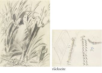 | Vogel im Gebüsch, um 1911 rückseitig: Militärische Übung | |