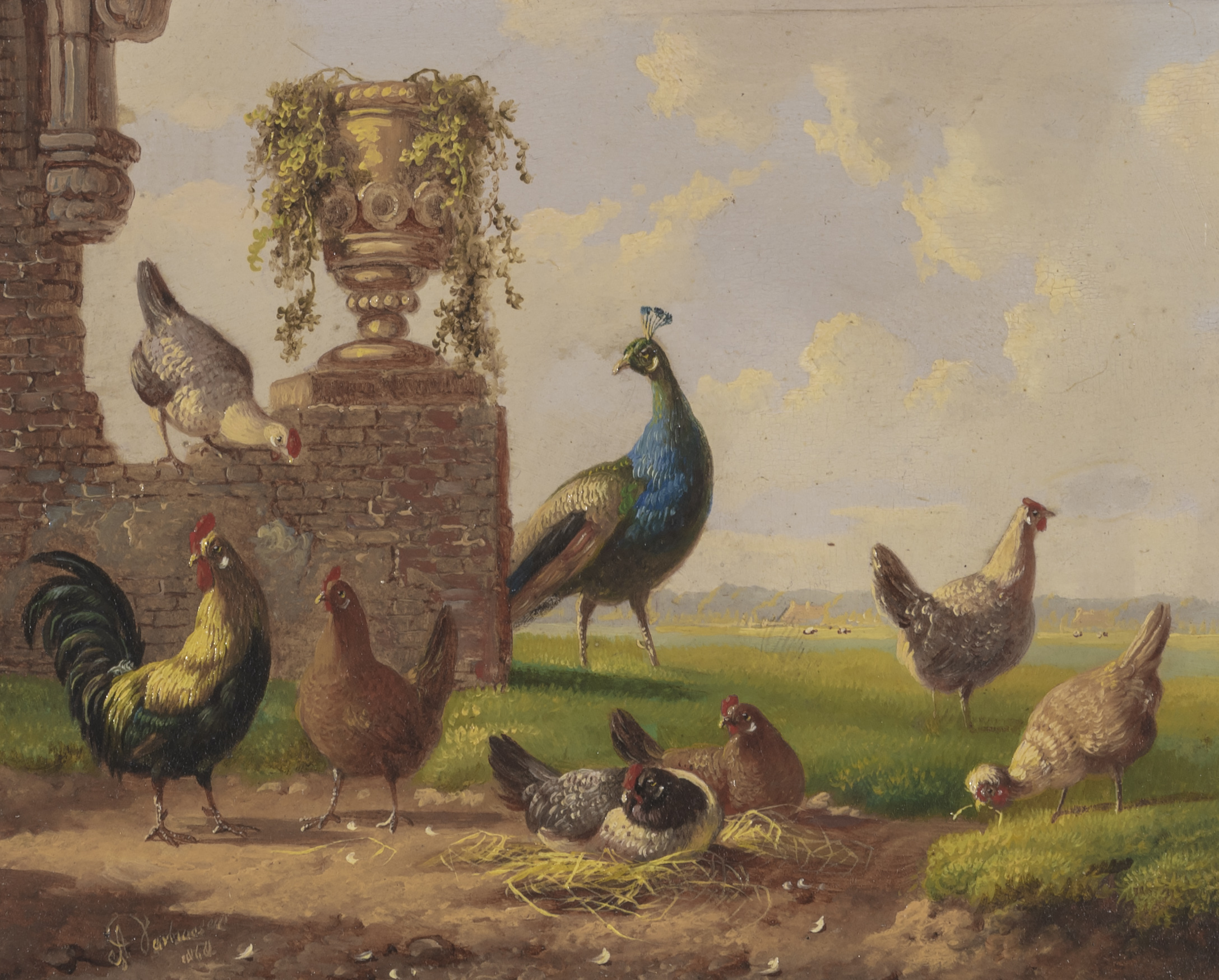 | Peackock with Chicken and Hen in the Poultry Yard | |