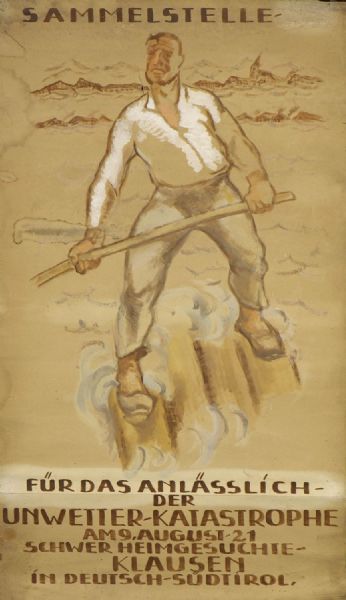 | Sammelstelle für das anlässlich der Unwetterkatastrophe am 9. August 21 schwer heimgesuchte Klausen in Deutsch-Südtirol. | |