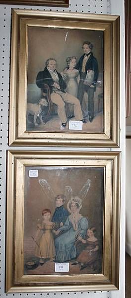 | The Wildblood family - a group portrait of a seated lady and three children; together with another of a seated gentlemen, two ch | |