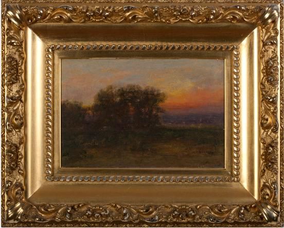 LANDSCAPE WITH THICKET OF TREES AT SUNSET