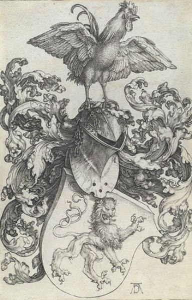 Coat of Arms with a Lion and a Cock.