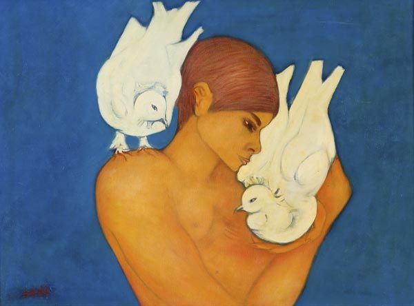 Donna con colombe