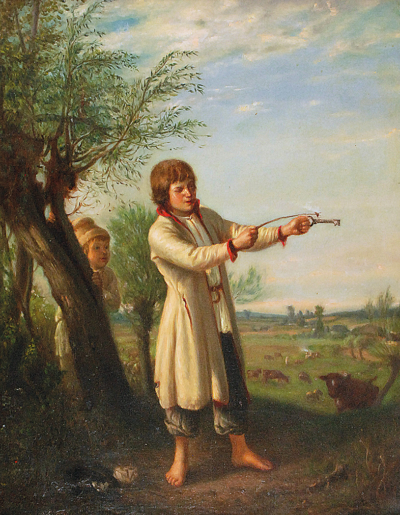 Chłopak strzelający z klucza, przed