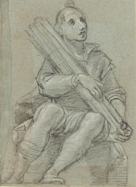 A SEATED YOUTH HOLDING A BUNDLE OF STICKS