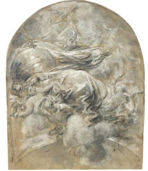 | Chalk recto: drawn with the brush in several shades of gray wash, heightened with white;erso: black chalk and gray wash and white heightening, within black chalk lines indicating an arched top with shoulders | |