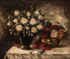 Still life with roses and chrysanthemum