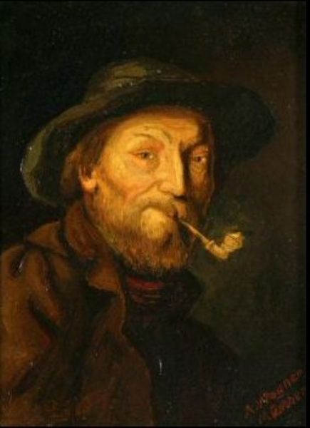 Bärtiger Bauer mit Pfeife.