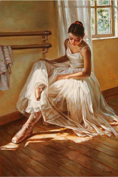 A ballet girl rests her feet