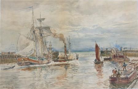 | A SAILING SHIP BEING TAKEN OUT OF HARBOUR BY A PADDLE STEAMER | |