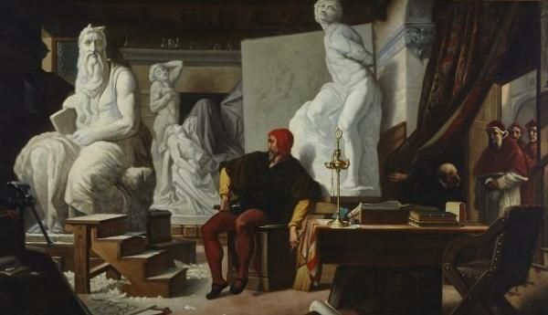 MICHAELANGELO IN HIS STUDIO, VISITED BY POPE JULIUS II