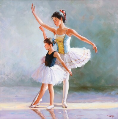 A young ballerina teaching a little girl