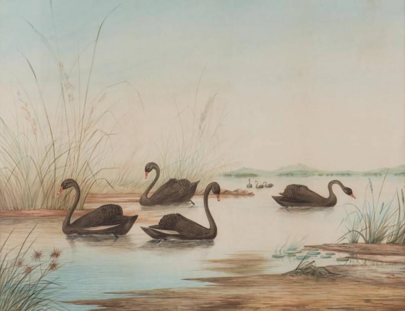 Black Swans at Swan Bay and the You Yangs. Circa 1880