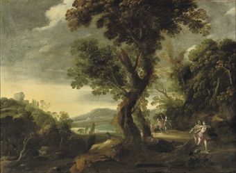 | A wooded river landscape with Diana and her nymphs hunting | |
