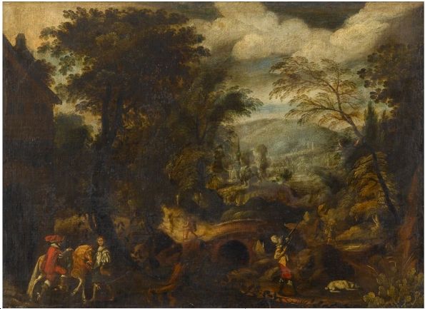 | HUNTING PARTY IN AN EXTENSIVE LANDSCAPE | |
