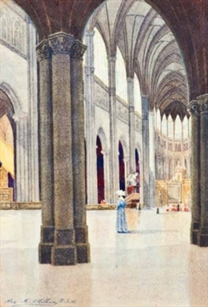 French Cathedrak interiors with figures