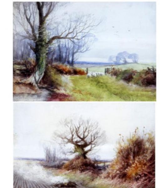 | Shepherd and flock in a wooded landscape, and another of hedgerows and a ploughed field | |