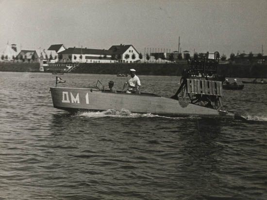 | 'Dynamo' Water Stadium, Motor Boat 'DM-1' Built by Students in the Wood and Metal Factory of Vkhutein | |