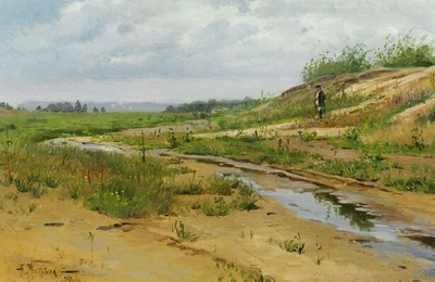 | Russian pastoral landscape with a stream. | |