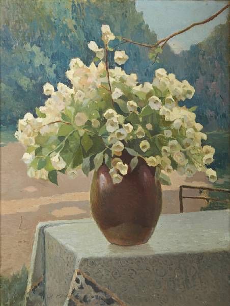 A still life with flowers in a vase