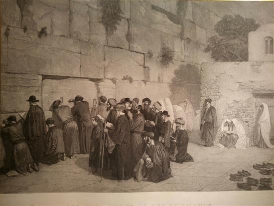 | Les Juifs devant le mur de Salomon. Jews next to the Western Wall. Original, beautiful engraving. Published by Boussod and Valad | |