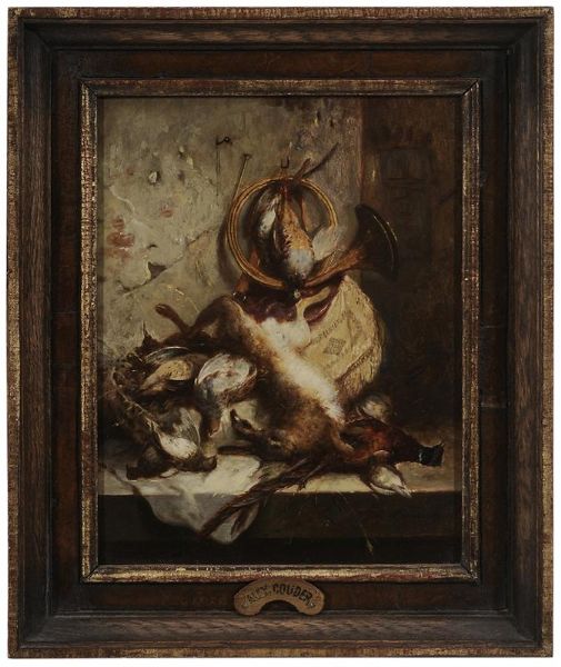 Nature Morte Still Life with horn, sack, pheasant, rabbit and other game