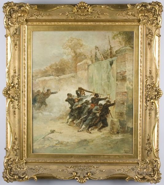 | Scene of embattled troops defending the gate during the Franco-Prussian War | |