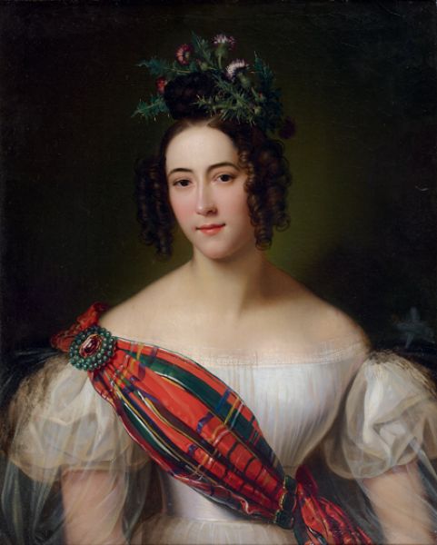 | Portrait d'une jeune écossaise portant un tartan et coiffée d'un chardon | |
