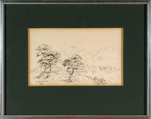 Weite Landschaft mit See, im Hintergrund die Höhenzüge eines Gebirges