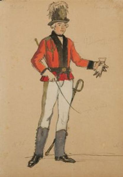 | A costume design for La Dame de Pique: an officer with a riding crop | |