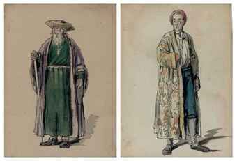 | Two costume designs for Tsarevich Alexis: Father Yakov and Man in a nightcap | |