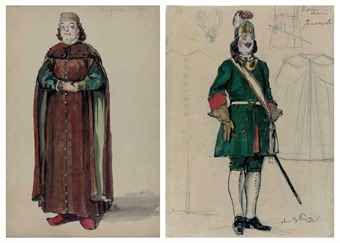 | Two costume designs for Tsarevich Alexis: Rumiantsev; and Tsarevna Maria | |
