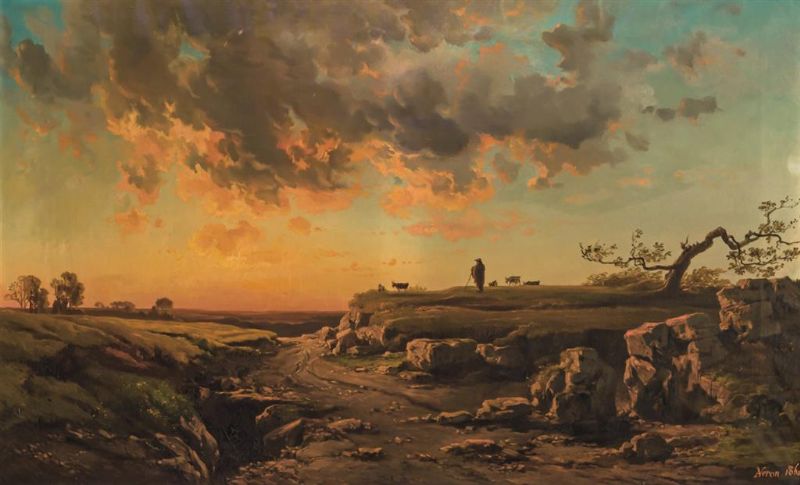 | Goat Herder and Flock on a Low Bluff, Sunset | |