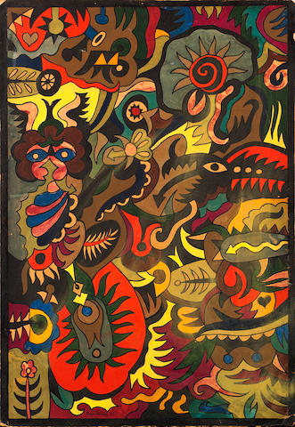 Tempera on card laid on hardboard