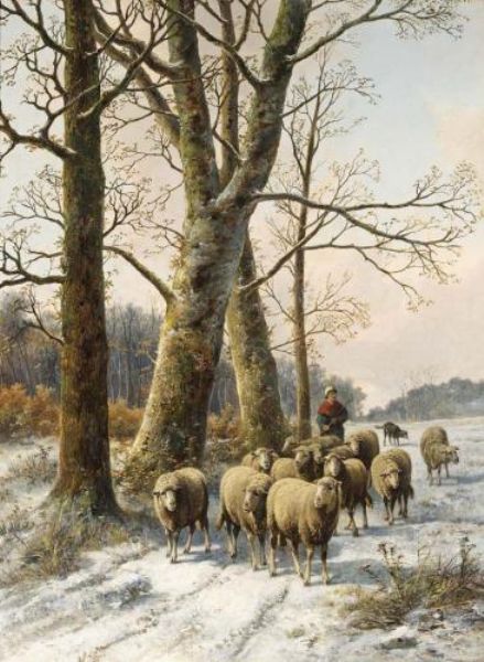 A SHEPHERD IN A WINTER LANDSCAPE