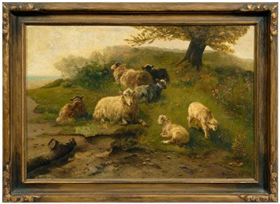 sheep resting on the shore