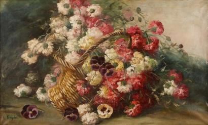 | Nature morte au bouquet d'oeillets et pensées dans un panier | |