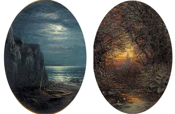 | Oil on board, within oval mounts , 2items | |