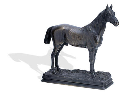 A figure of a stallion, bronze with dark brown patina, on a naturalistic base inscribed 'Dubucand', 24cm wide, 7.5cm deep, 24cm high (9in wide, 2 1/2in deep, 9in high) | |
